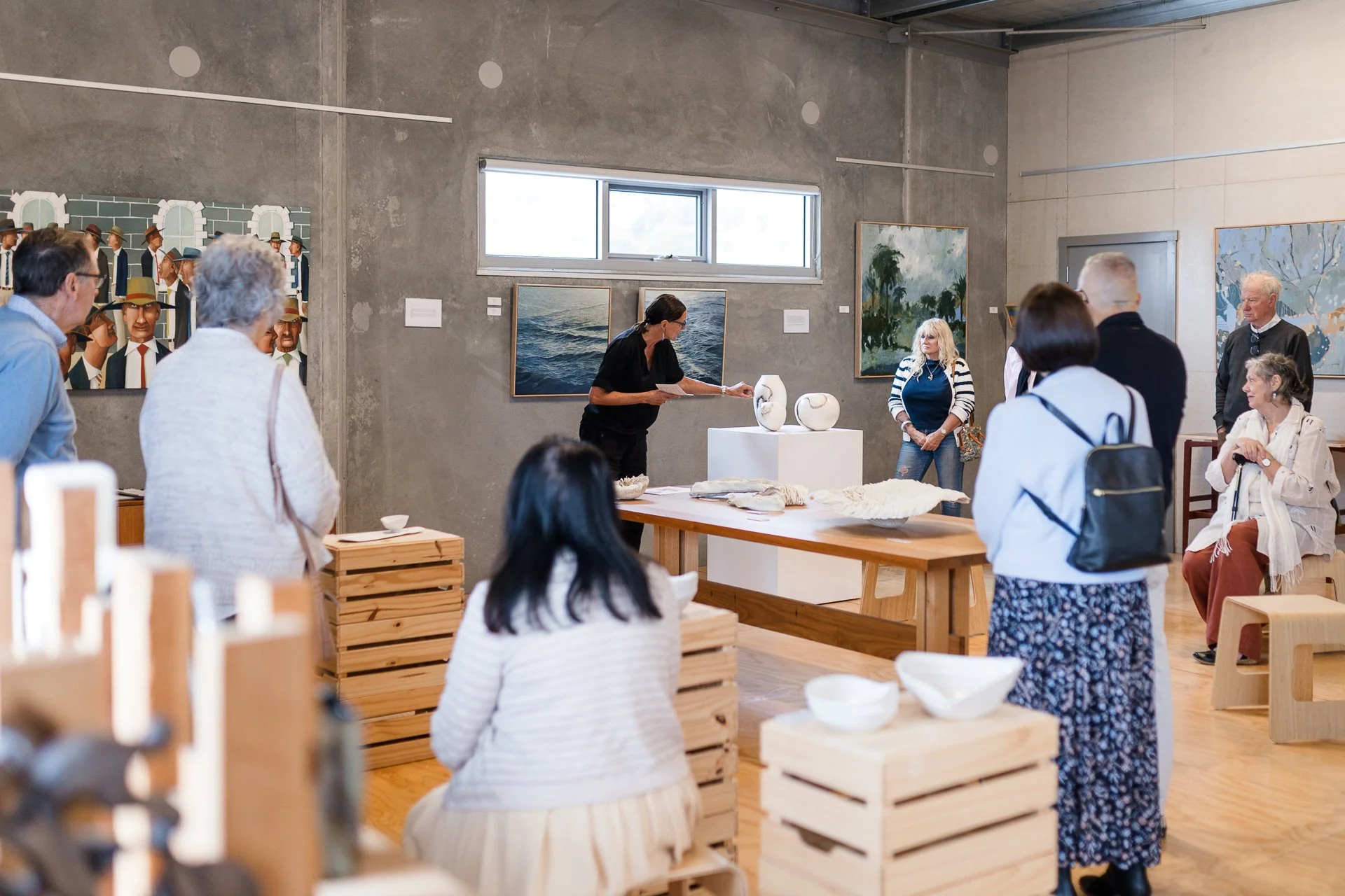 Bottom image: Geelong Gallery members visiting ‘Blanc’.